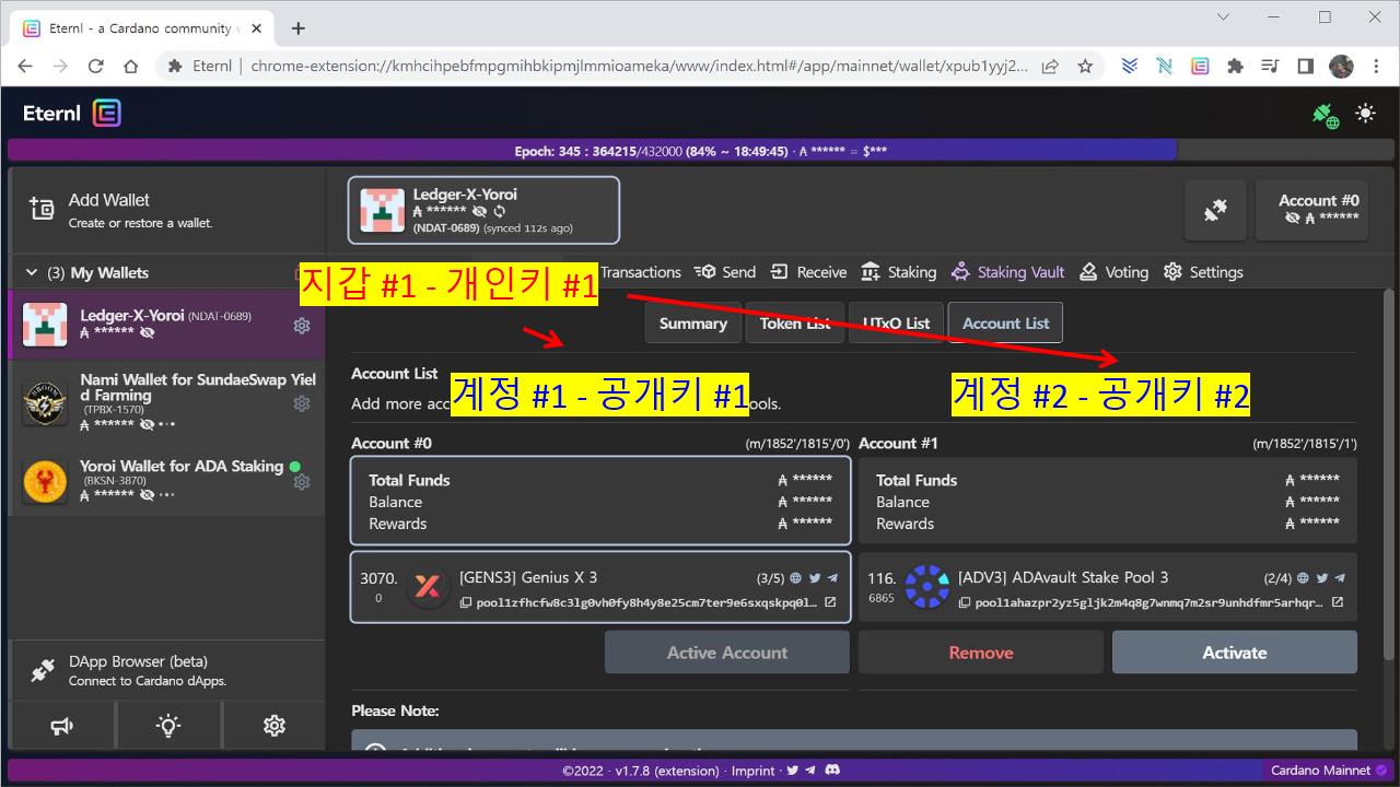 단, 하나의 지갑에 여러 개의 계정을 만드는 것은 보안하고는 아무런 상관이 없습니다.어차피 하나의 “개인키”로 관리되기 때문입니다.